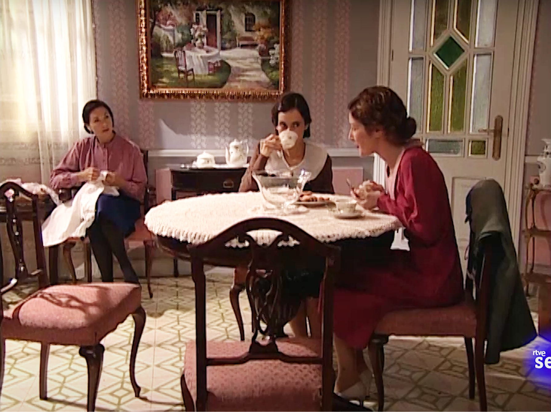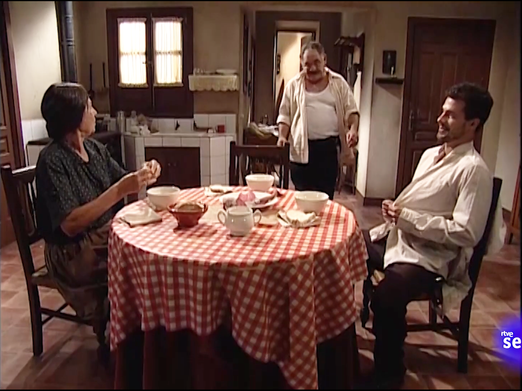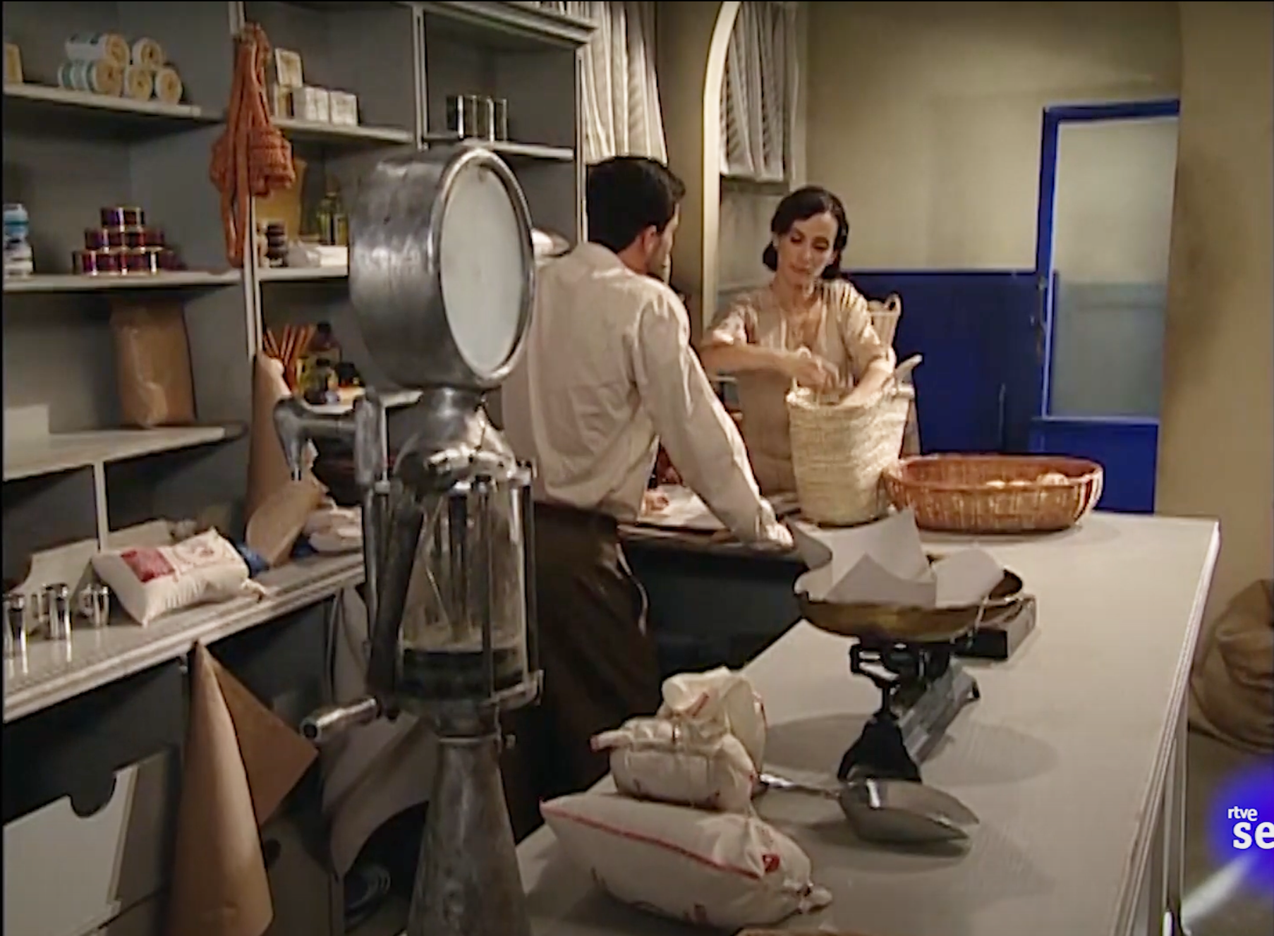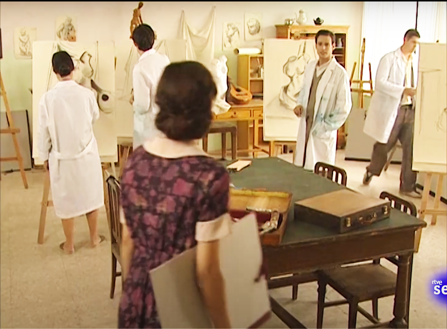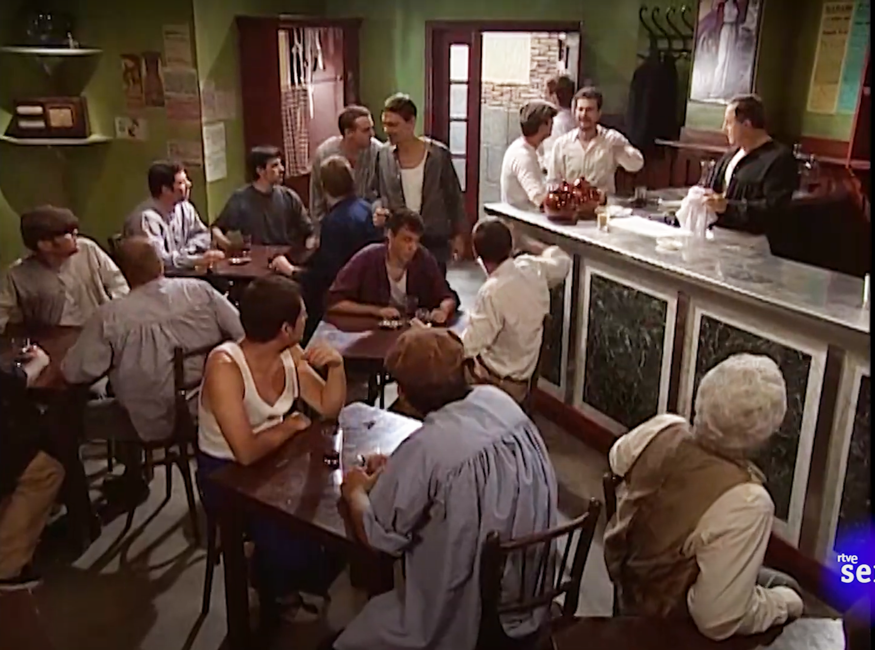 Main sets include: Andrea’s family apartment, an upscale home; El Asturiano, a typical Madrid tavern; Antonio’s humble family home; Andrea’s father’s factory office; Andrea’s best friend’s house; the plaza and grocery store.