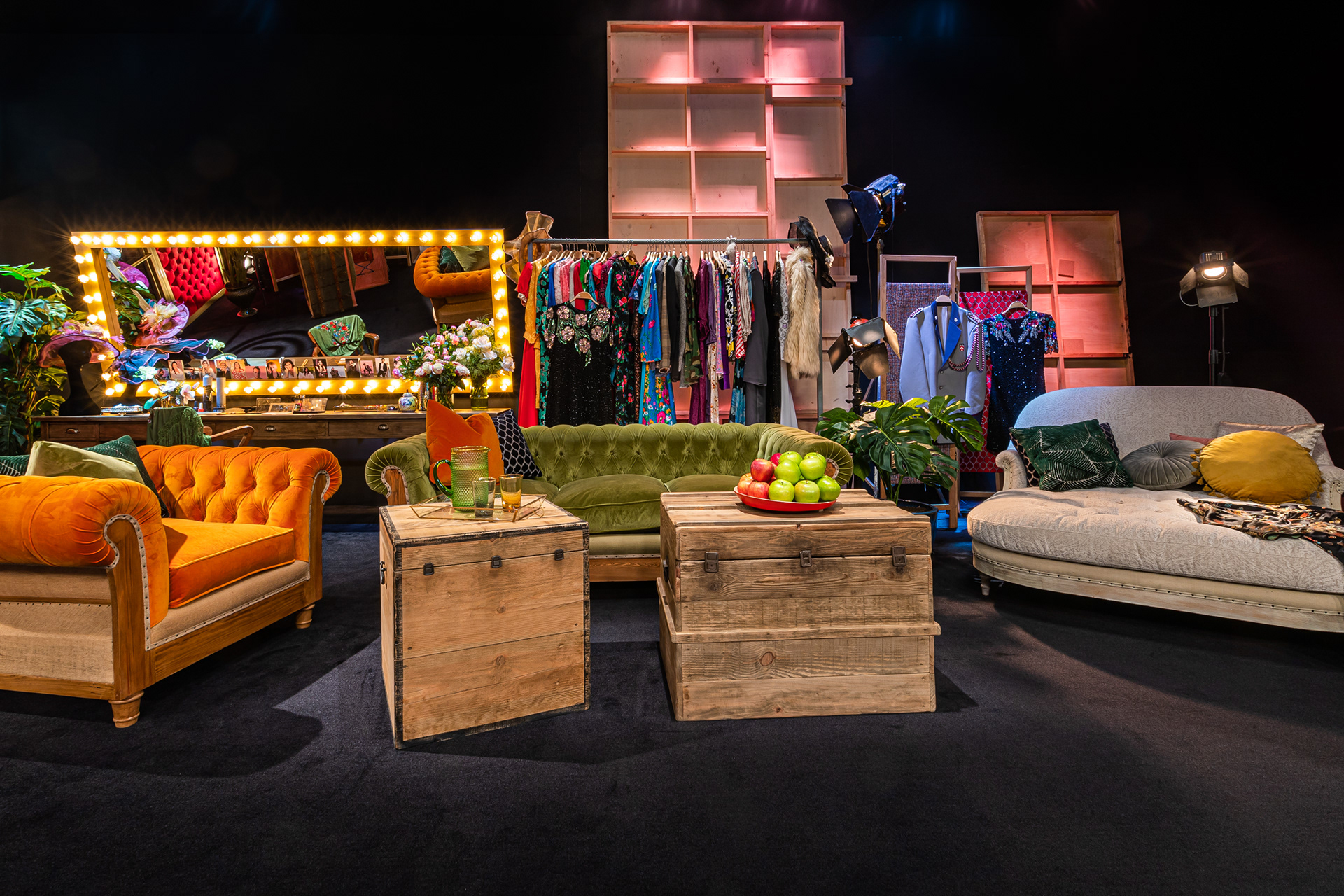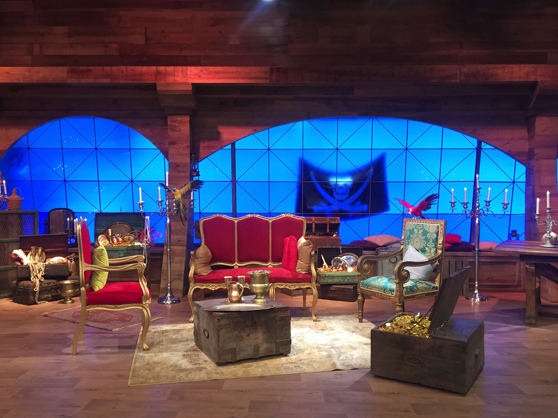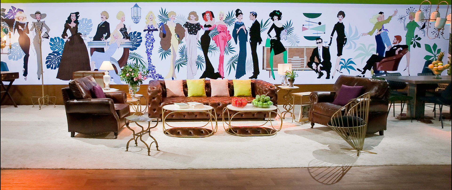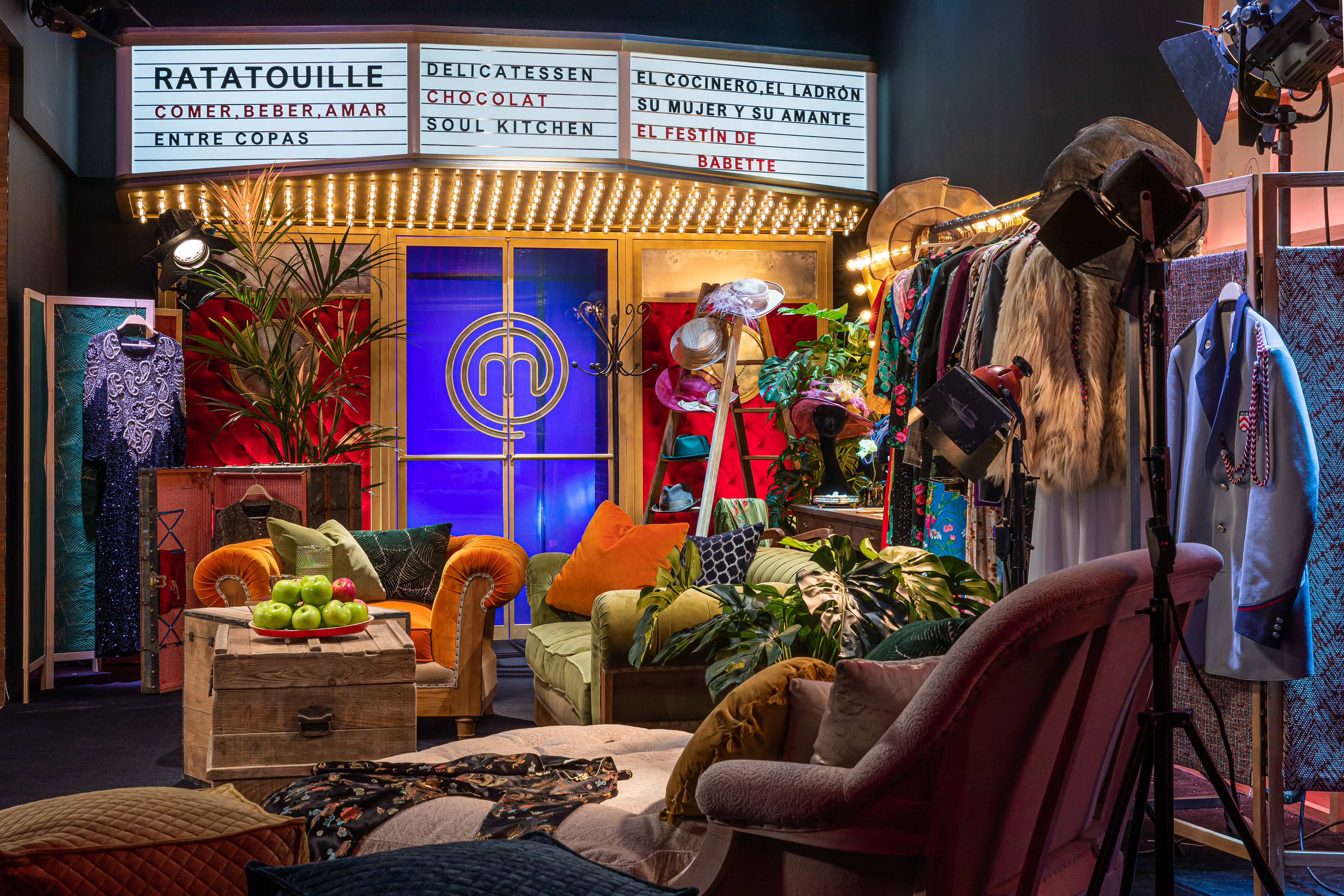 Un salón industrial, un espacio que homenajea a las estrellas de Hollywood ( mural de Abe the Ape), el camerino de un teatro de principios del siglo 20, una sala de inspiración japonesa, un bar tropical, el backstage de un teatro, la azotea de un supuesto hotel Masterchef...